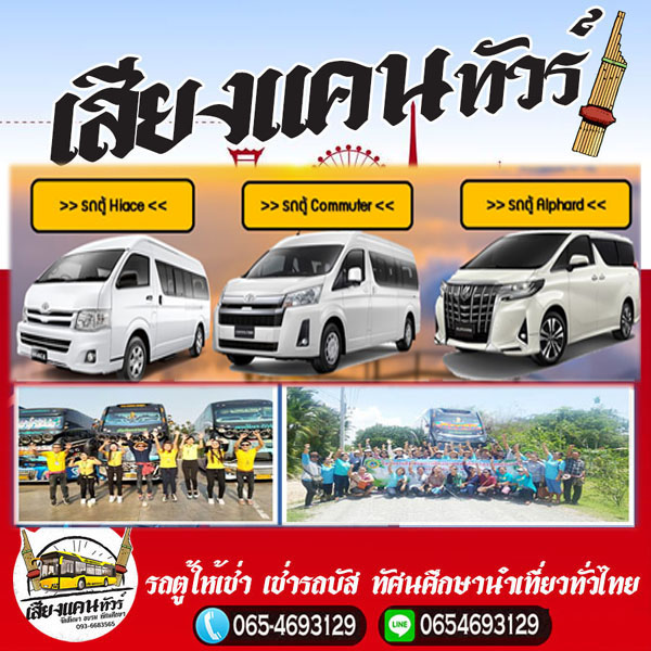 เสียงแคนทัวร์เหมารถตู้พร้อมคนขับ........... เราสามารถแนะนำการเดินทางได้ โทรปรึกษาสอบถามกับทางเราก่อนได้ครับ วางแผนเส้นทาง การเดินทางท่านได้ เพื่อเป็นการประหยัดเวลาการเดินทางครับ ไม่ว่าจะเหมารถตู้วีไอพีเรา ไปต่างจังหวัด เช่นพัทยา หัวหิน ระยอง เกาะช้าง และจังหวัดอื่นๆในประเทศไทยมากมาย สถานที่ท่องเที่ยว ทั้งสี่ภาค หรือเดินทางไปต่างจังหวัดเพื่อไปสัมมนา ประชุม รับปริญญา หรือทำธุระต่างๆ เรายินดีให้บริการค่ะ